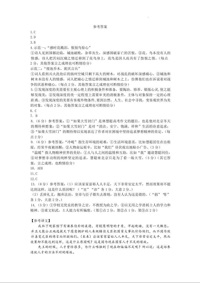 四川省成都市石室中学2024-2025学年高三上学期10月月考 语文答案