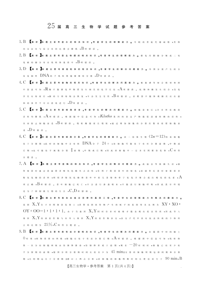 四川省部分学校2025届高三10月联考 生物答案