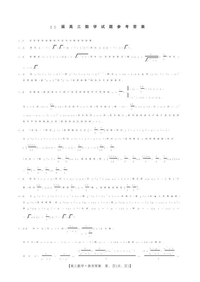 四川省部分学校2025届高三10月联考 数学答案