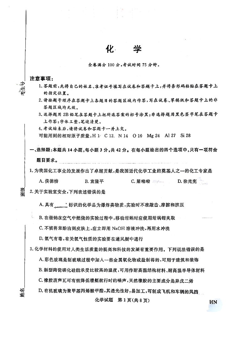 2025届高三金科新未来10月联考 化学