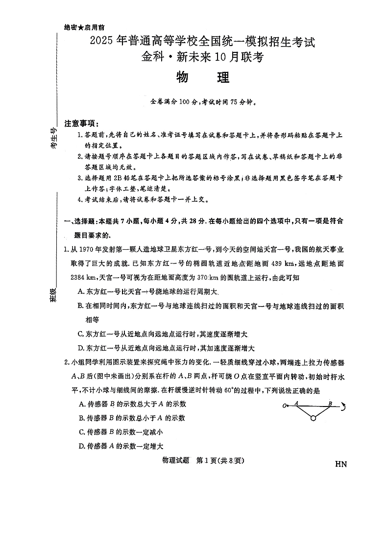2025届高三金科新未来10月联考 物理