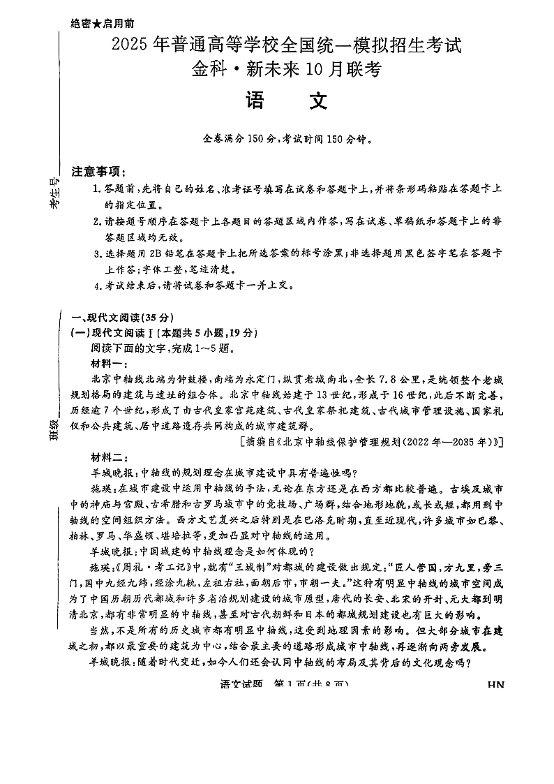 2025届高三金科新未来10月联考 语文