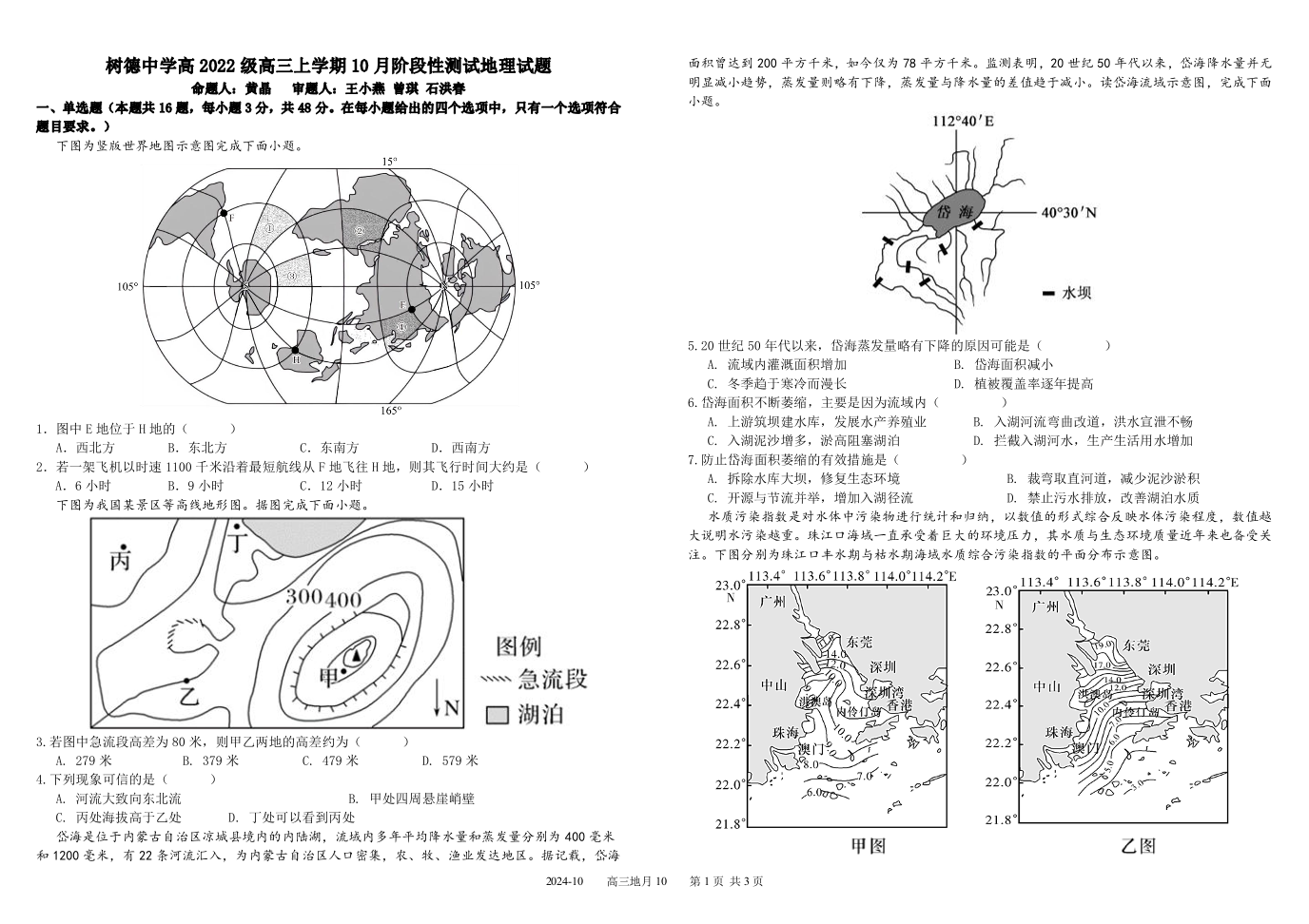 四川省成都市树德中学2025届高三上学期10月月考 地理