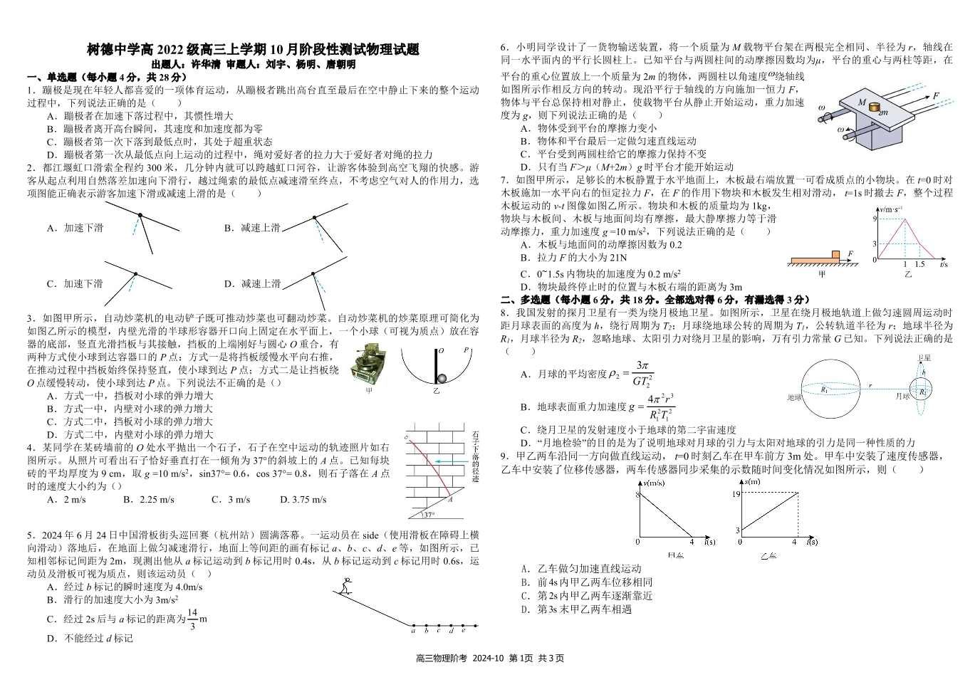 四川省成都市树德中学2025届高三上学期10月月考 物理