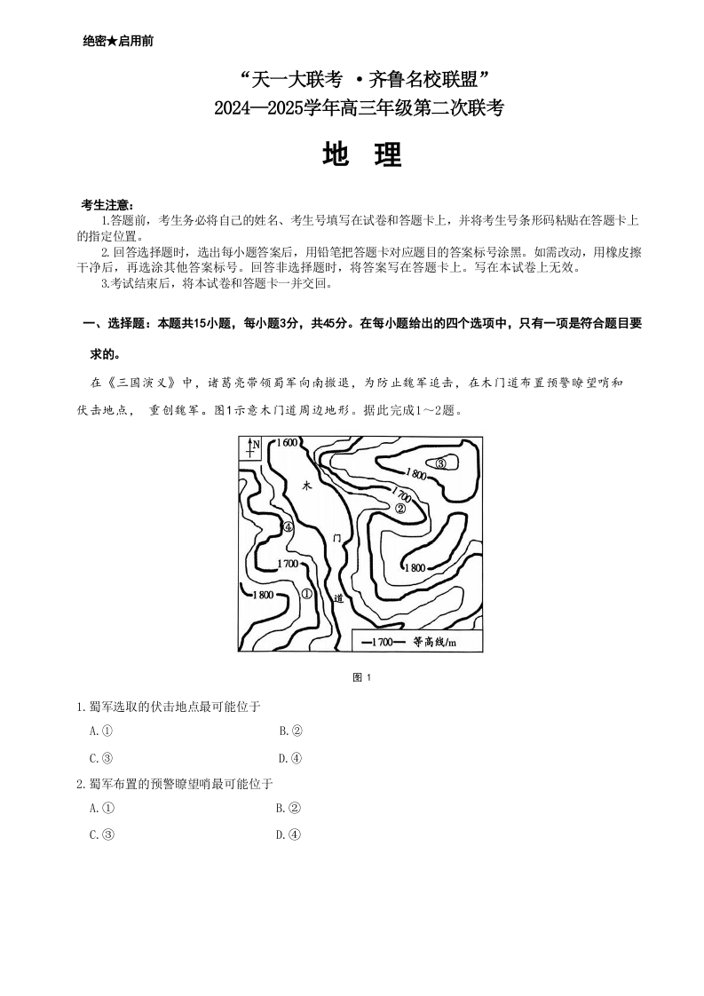 山东省齐鲁名校2024-2025学年高三年级第二次联考 地理