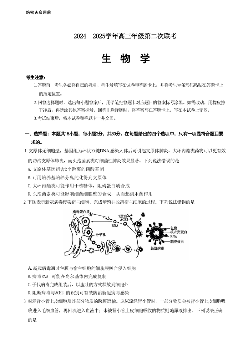 山东省齐鲁名校2024-2025学年高三年级第二次联考 生物