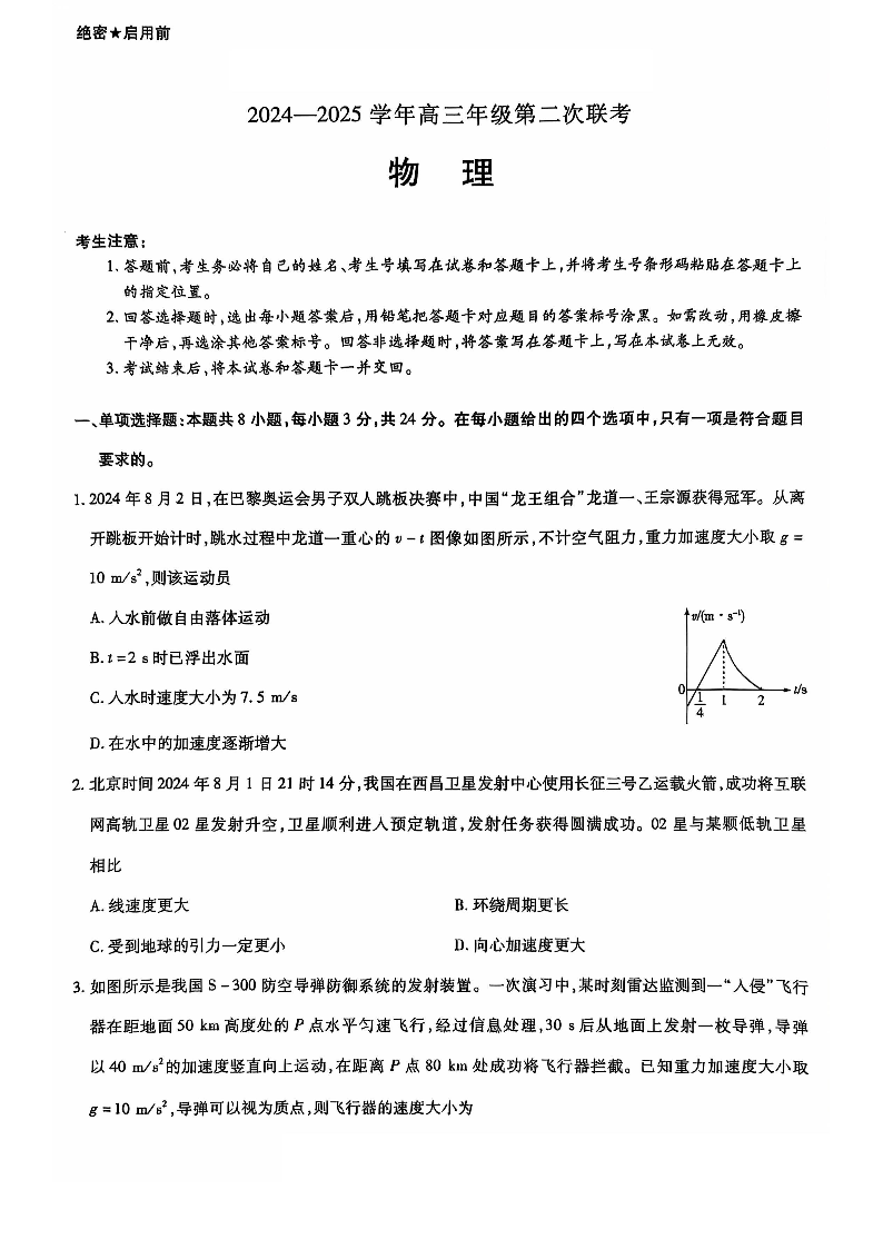 山东省齐鲁名校2024-2025学年高三年级第二次联考 物理