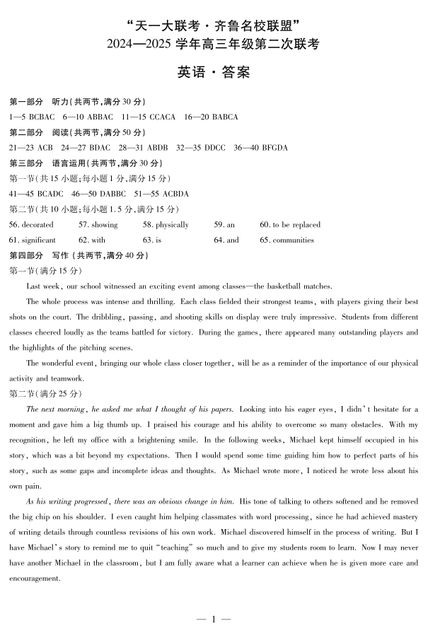 山东省齐鲁名校2024-2025学年高三年级第二次联考 英语答案