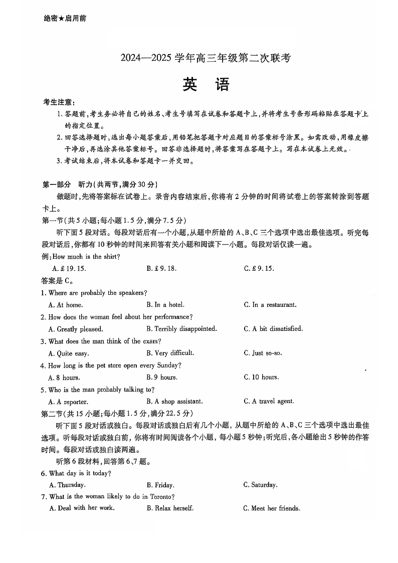 山东省齐鲁名校2024-2025学年高三年级第二次联考 英语
