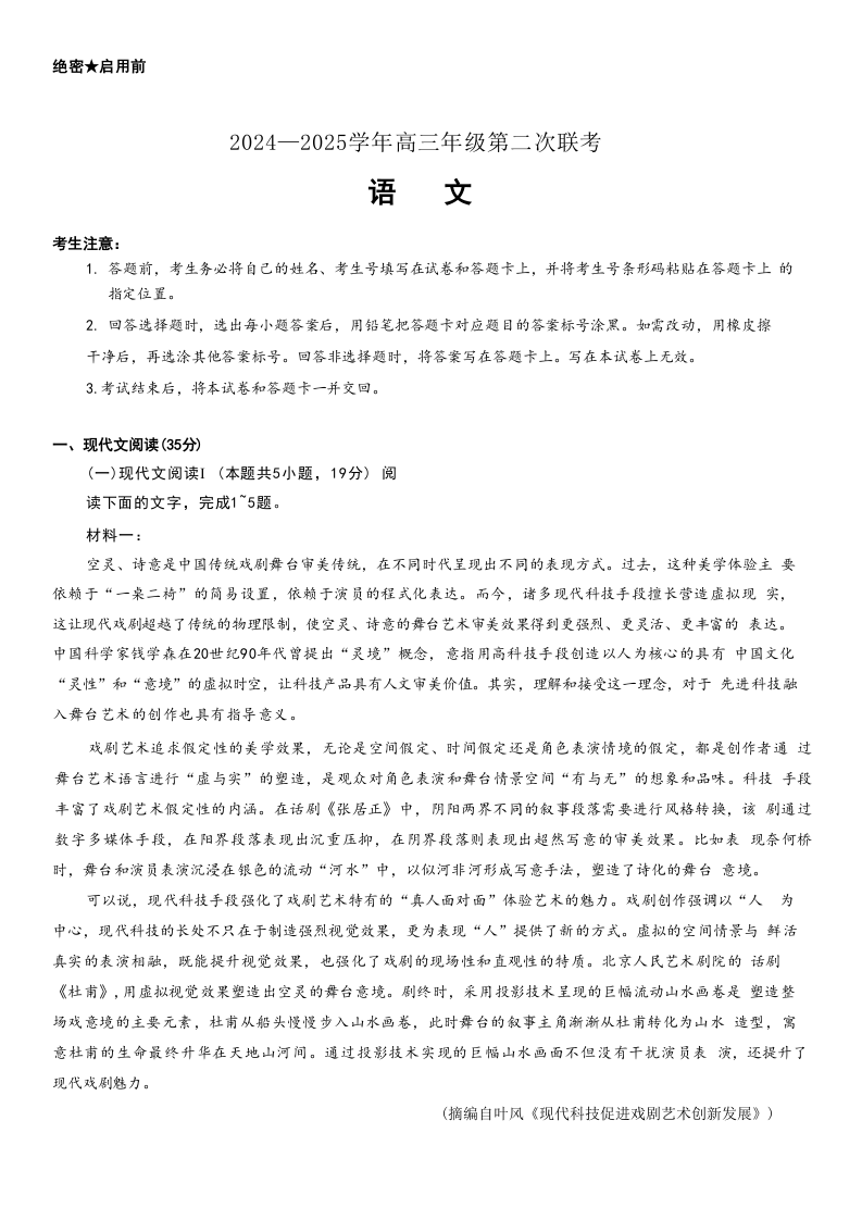 山东省齐鲁名校2024-2025学年高三年级第二次联考 语文