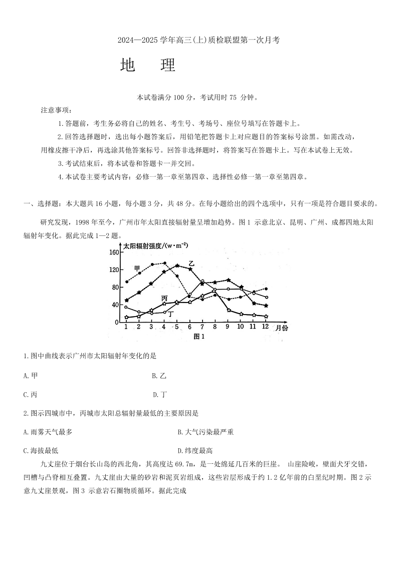 河北省邢台市质检联盟2024-2025学年高三上学期10月月考 地理