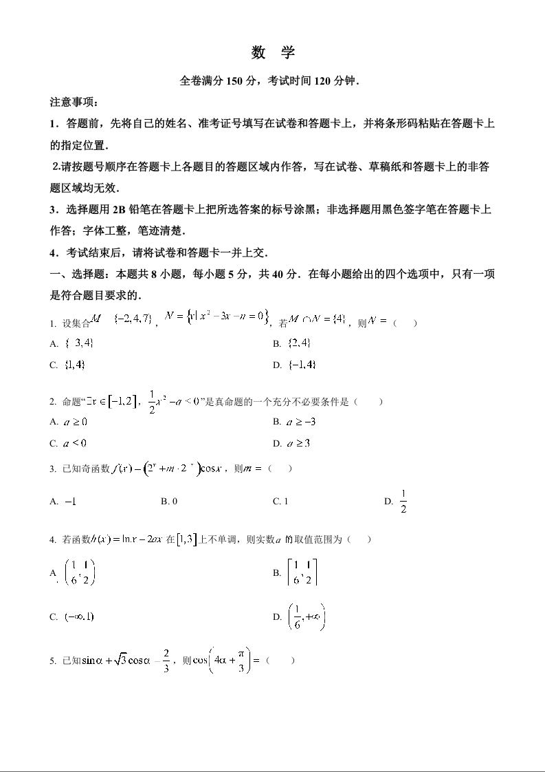 福建省百校联考2024-2025学年高三上学期10月测评 数学