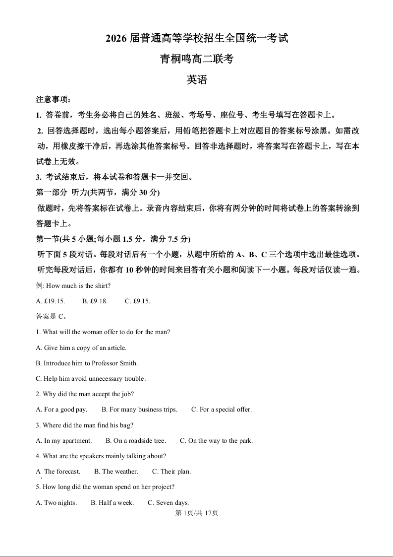 河南省青桐鸣大联考2024-2025学年高二10月月考 英语