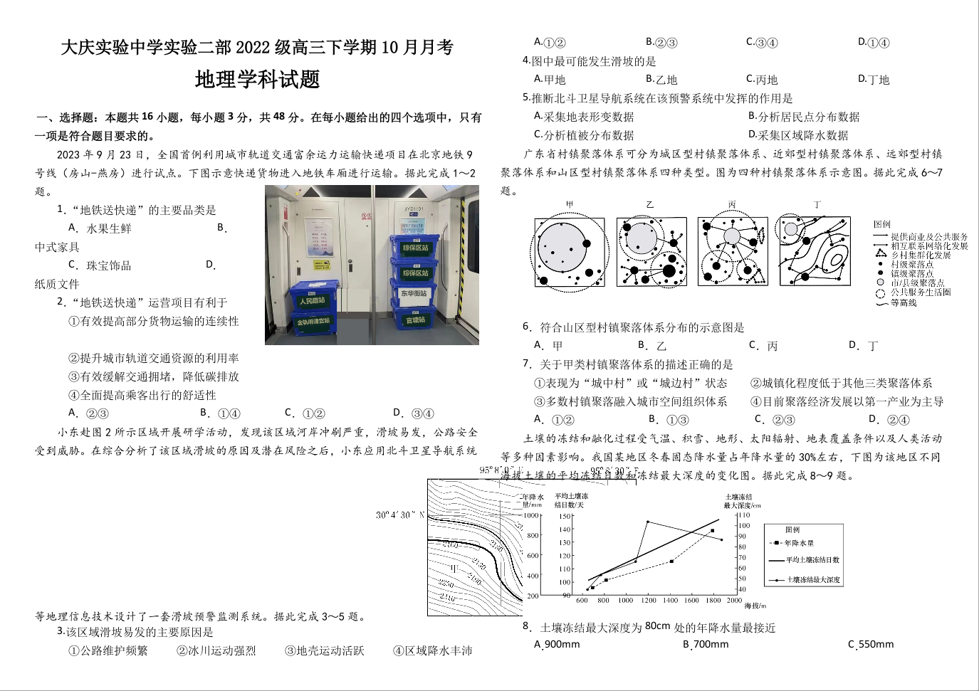 黑龙江省大庆市实验中学实验二部2024-2025学年高三上学期10月考试 地理