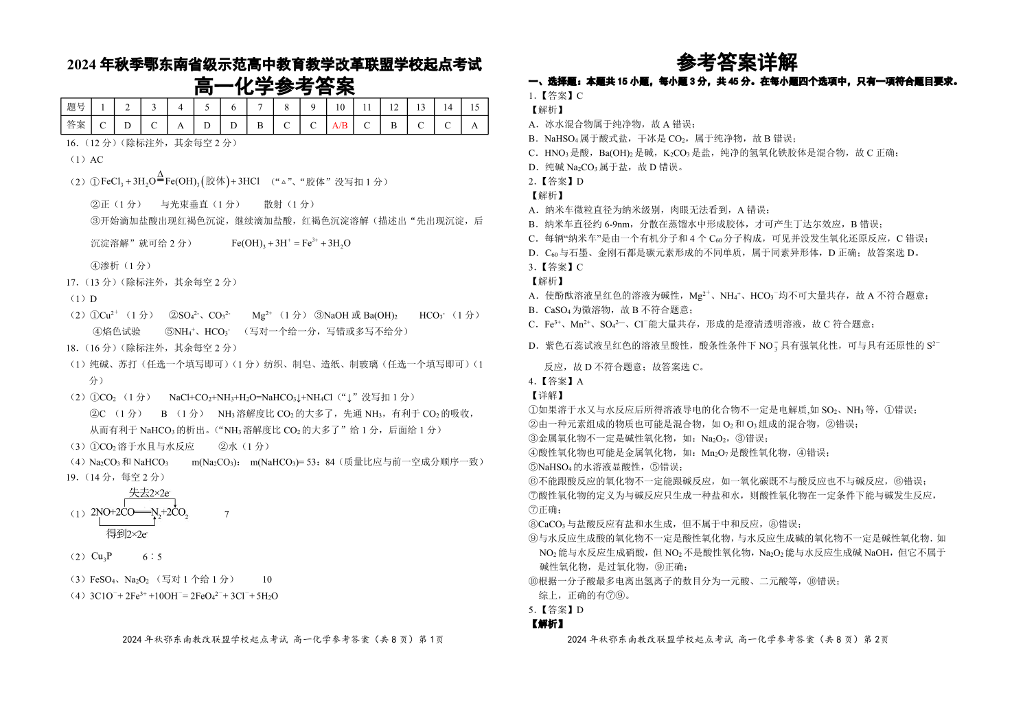高一化学参考答案