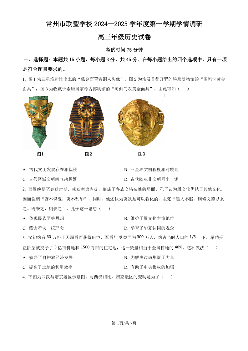 江苏省常州市联盟学校2025届高三上学期10月月考 历史