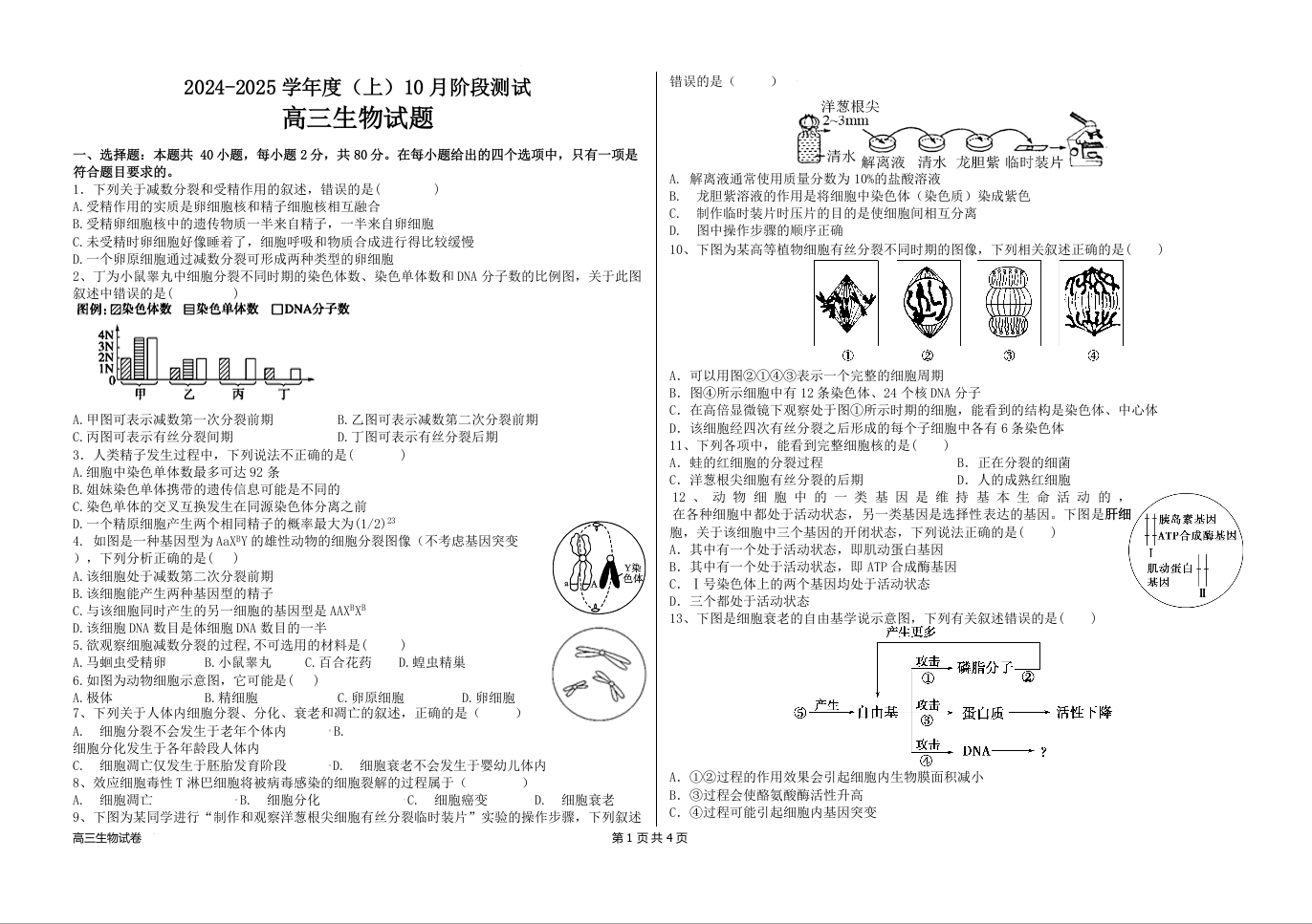 黑龙江省佳木斯市第八中学2025届高三上学期10月月考 生物