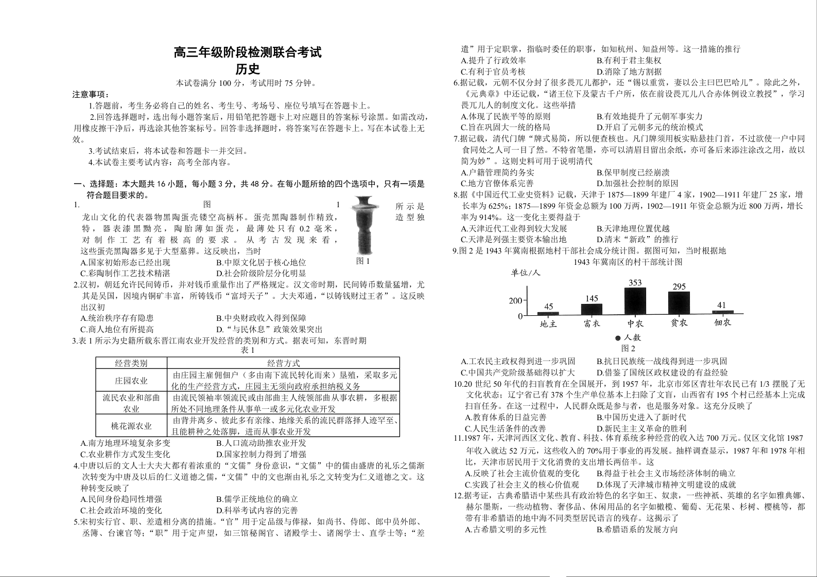 湖南省部分学校2024-2025学年高三年级10月阶段检测联合考试 历史