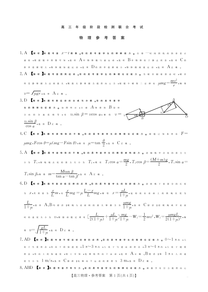 湖南省部分学校2024-2025学年高三年级10月阶段检测联合考试 物理答案