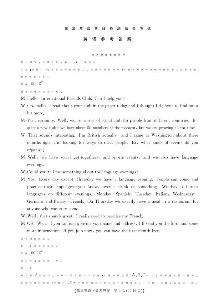 湖南省部分学校2024-2025学年高三年级10月阶段检测联合考试 英语答案