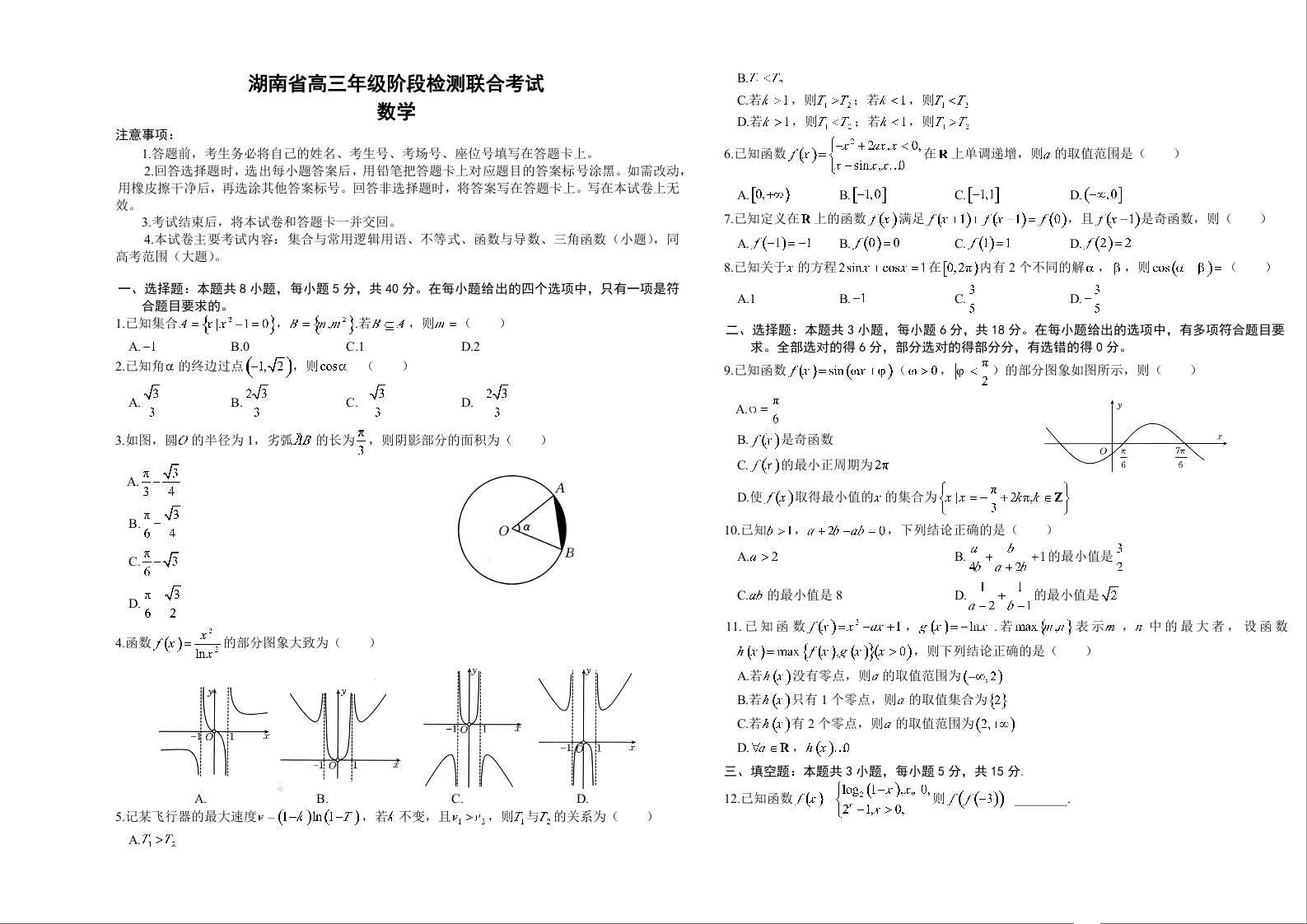 湖南省部分学校2024-2025学年高三年级10月阶段检测联合考试 数学