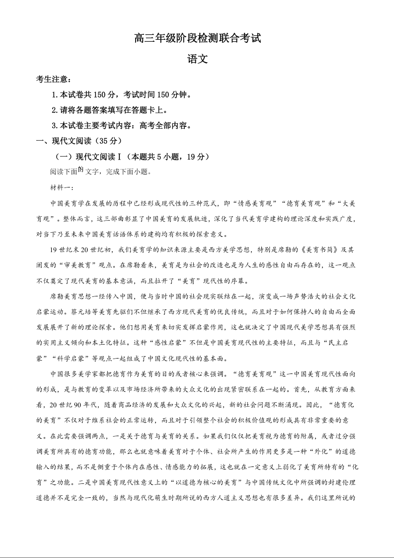 湖南省部分学校2024-2025学年高三年级10月阶段检测联合考试 语文