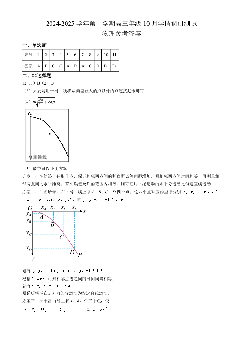 江苏省高邮市2025届高三上学期10月学情调研测试 物理答案