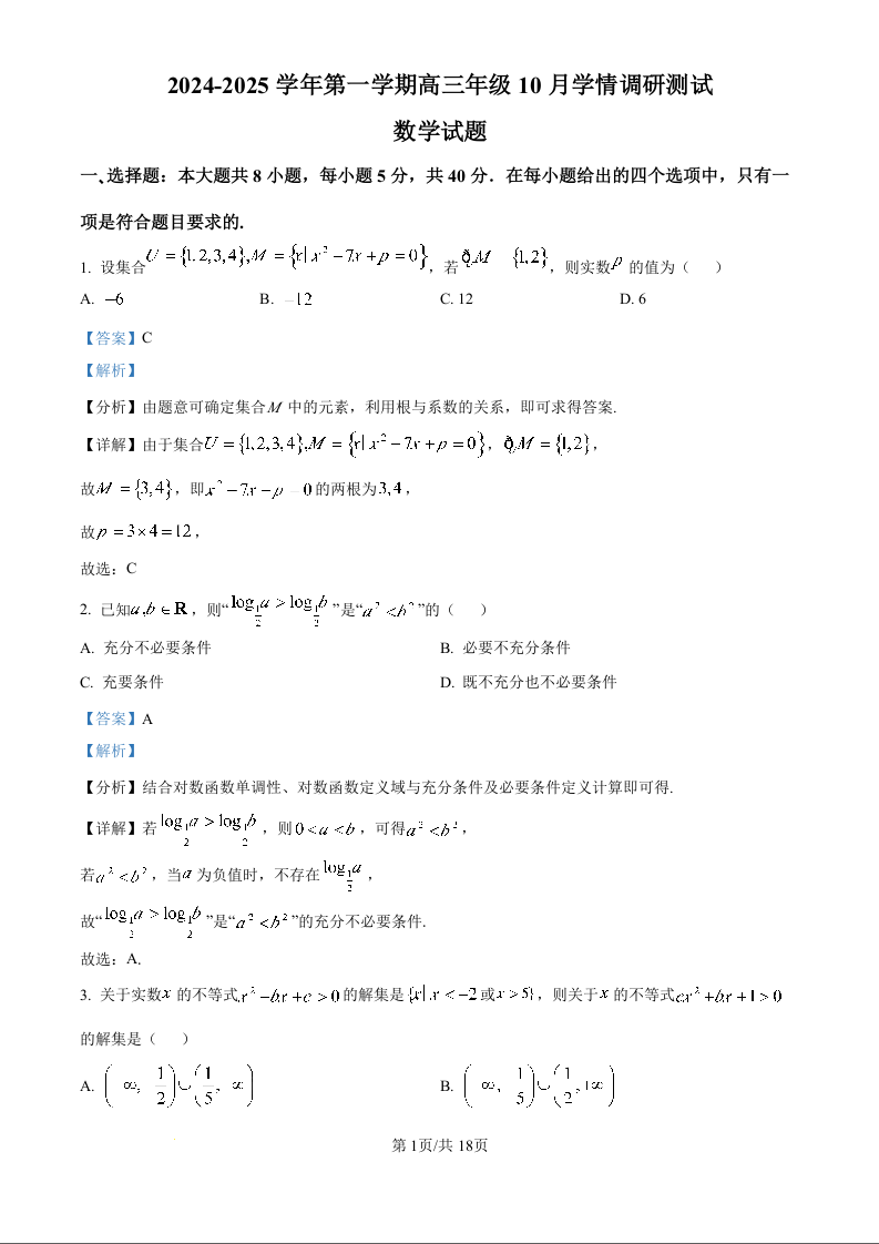 江苏省高邮市2025届高三上学期10月学情调研测试 数学答案