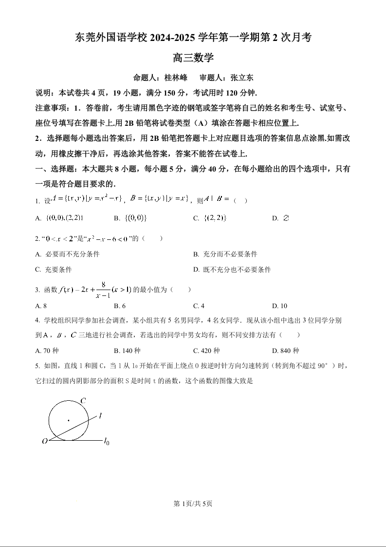 广东省东莞市东莞外国语学校2025届高三上学期10月月考 数学