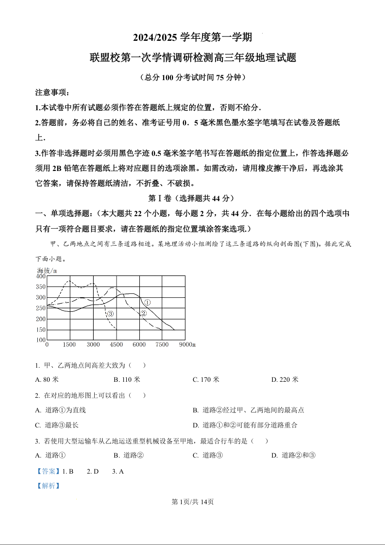 江苏省盐城市五校联考2025届高三上学期10月月考 地理答案