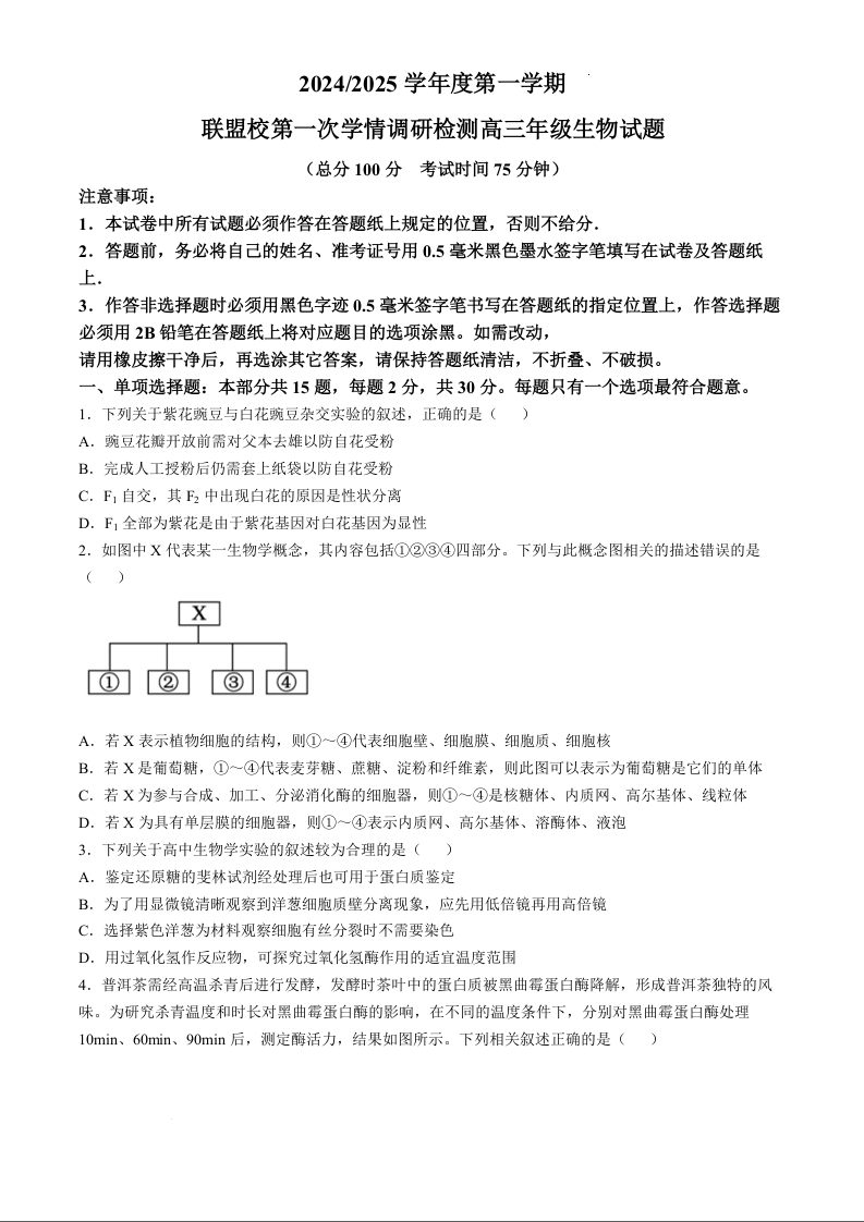 江苏省盐城市五校联考2025届高三上学期10月月考 生物