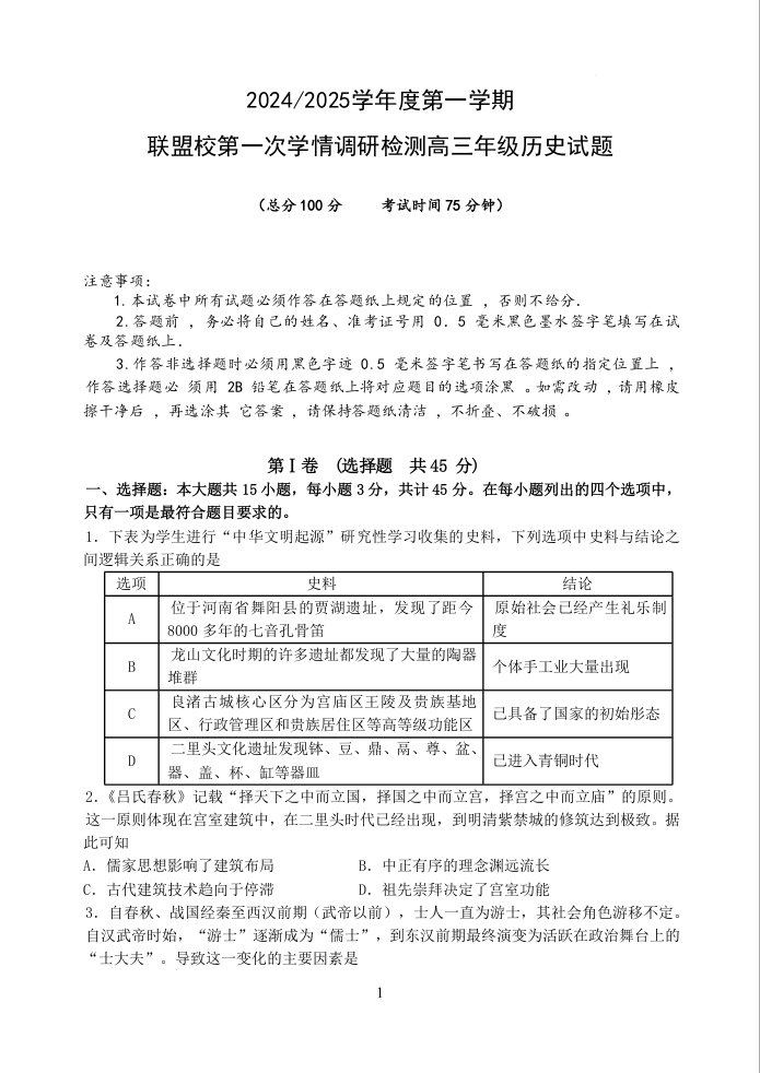 江苏省盐城市五校联考2025届高三上学期10月月考 历史