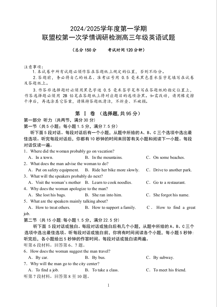 江苏省盐城市五校联考2025届高三上学期10月月考 英语
