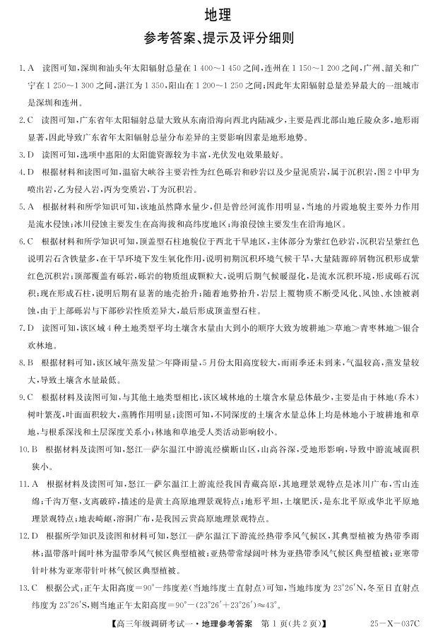 河南新高中创新联盟TOP二十名校2025届高三10月调研考试 地理答案