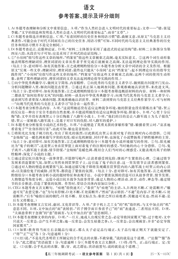 河南新高中创新联盟TOP二十名校2025届高三10月调研考试 语文答案