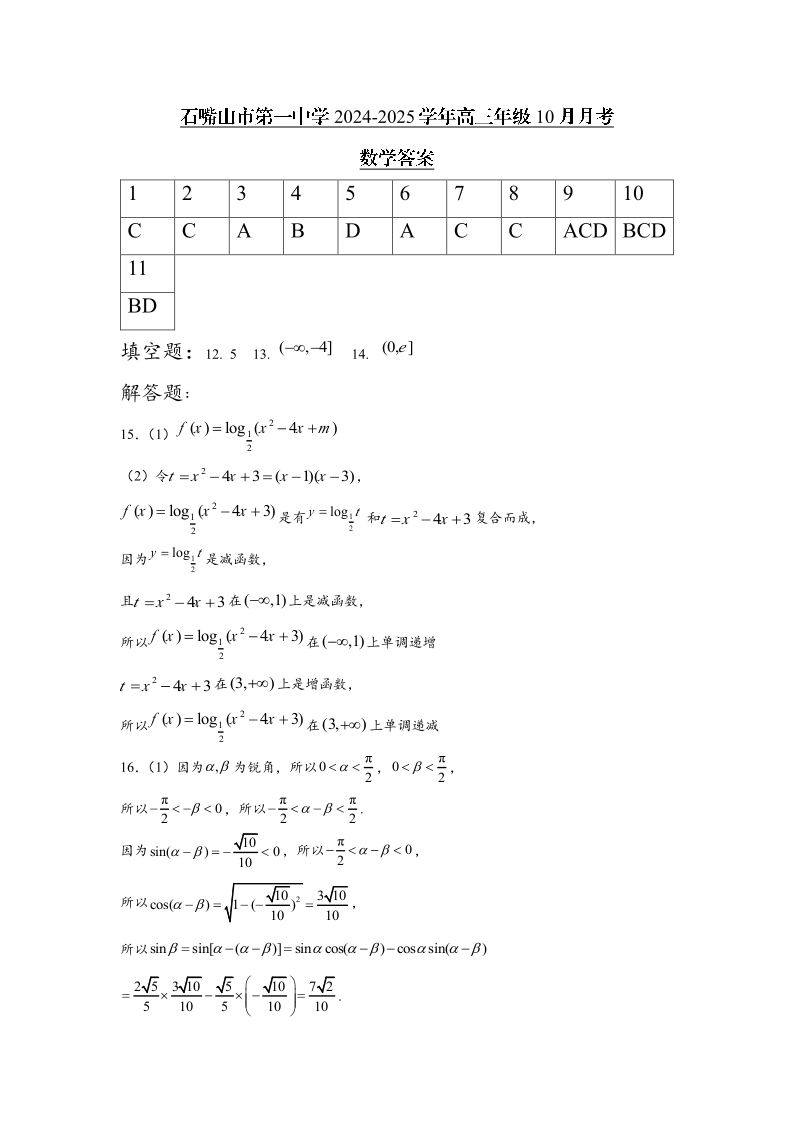 宁夏回族自治区石嘴山市第一中学2025届高三上学期10月月考 数学