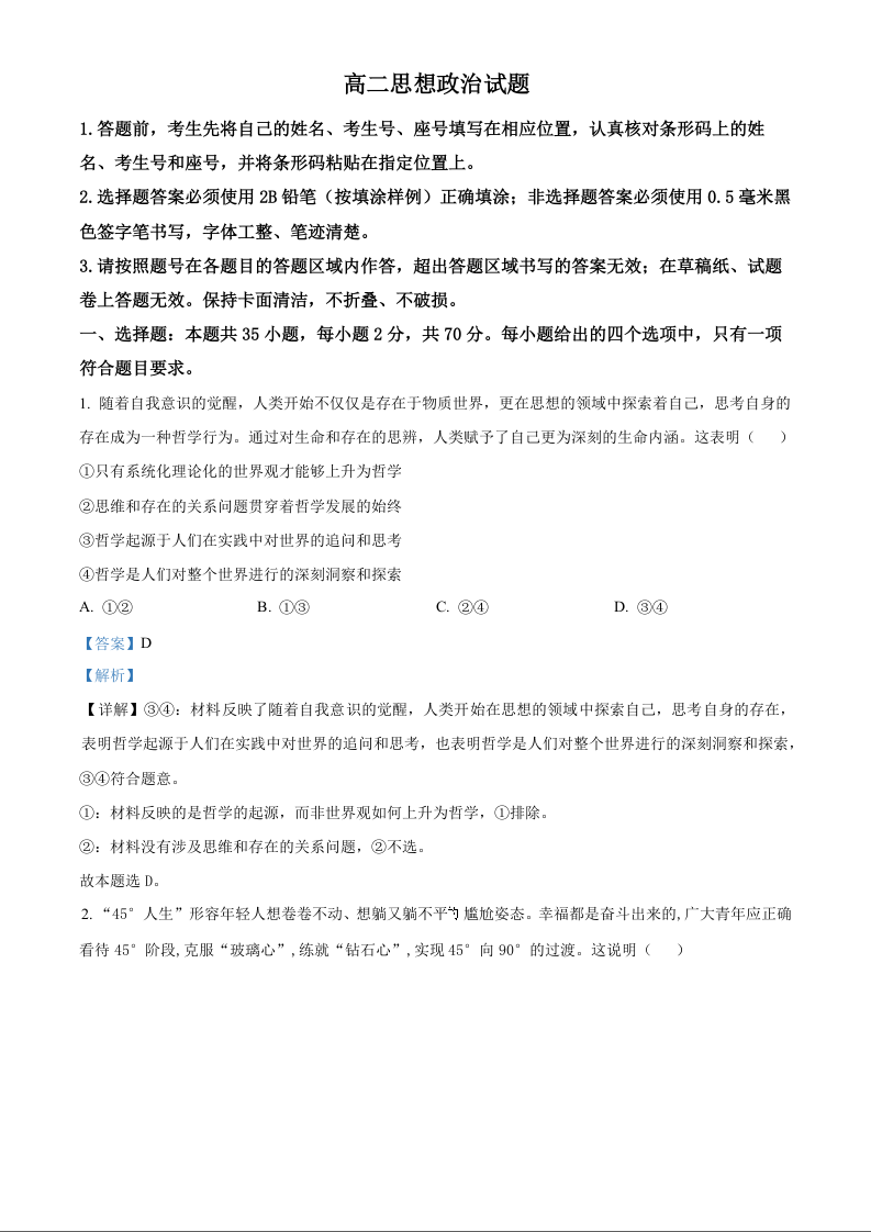 山东省济宁市邹城市第一中学2024-2025学年高二上学期10月月考 政治