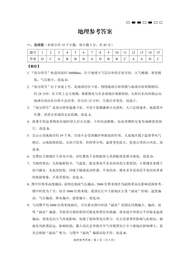 巴蜀中学2025届高考适应性月考卷(二)地理-答案