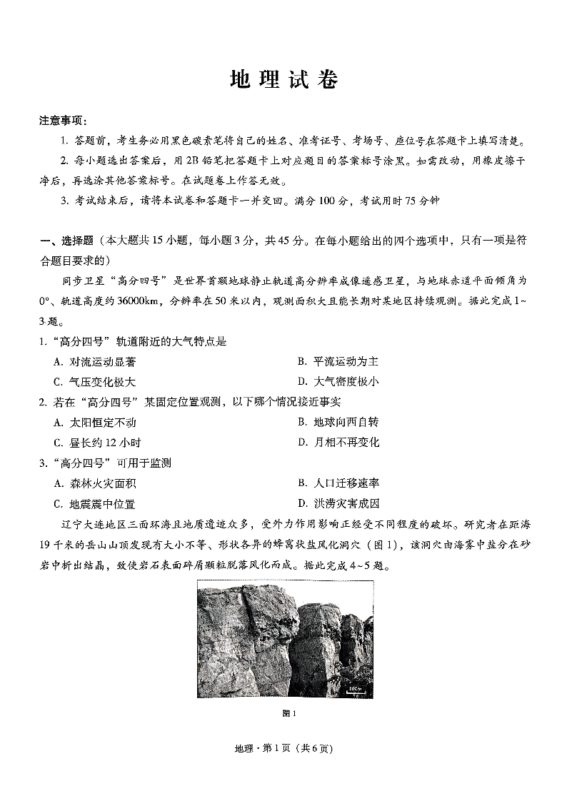 巴蜀中学月考二 地理
