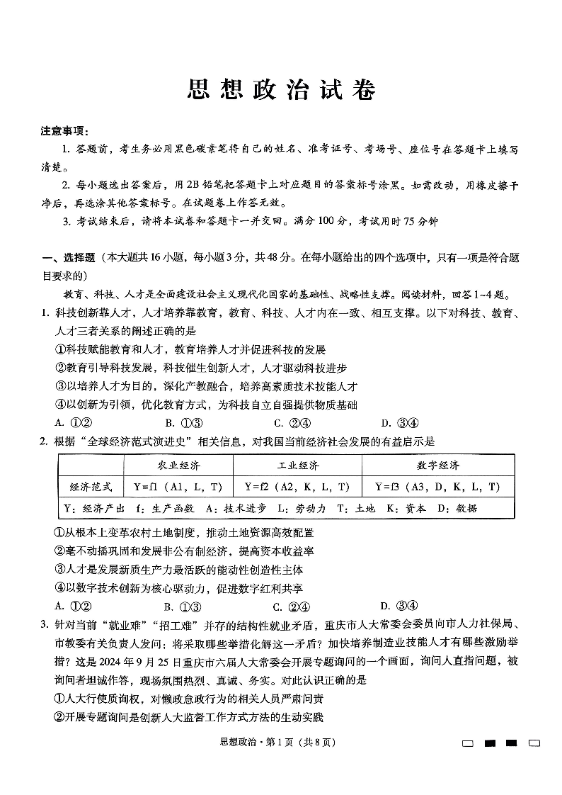 巴蜀中学月考二 政治