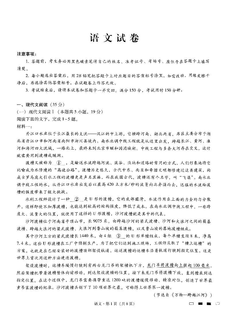 巴蜀中学月考二 语文