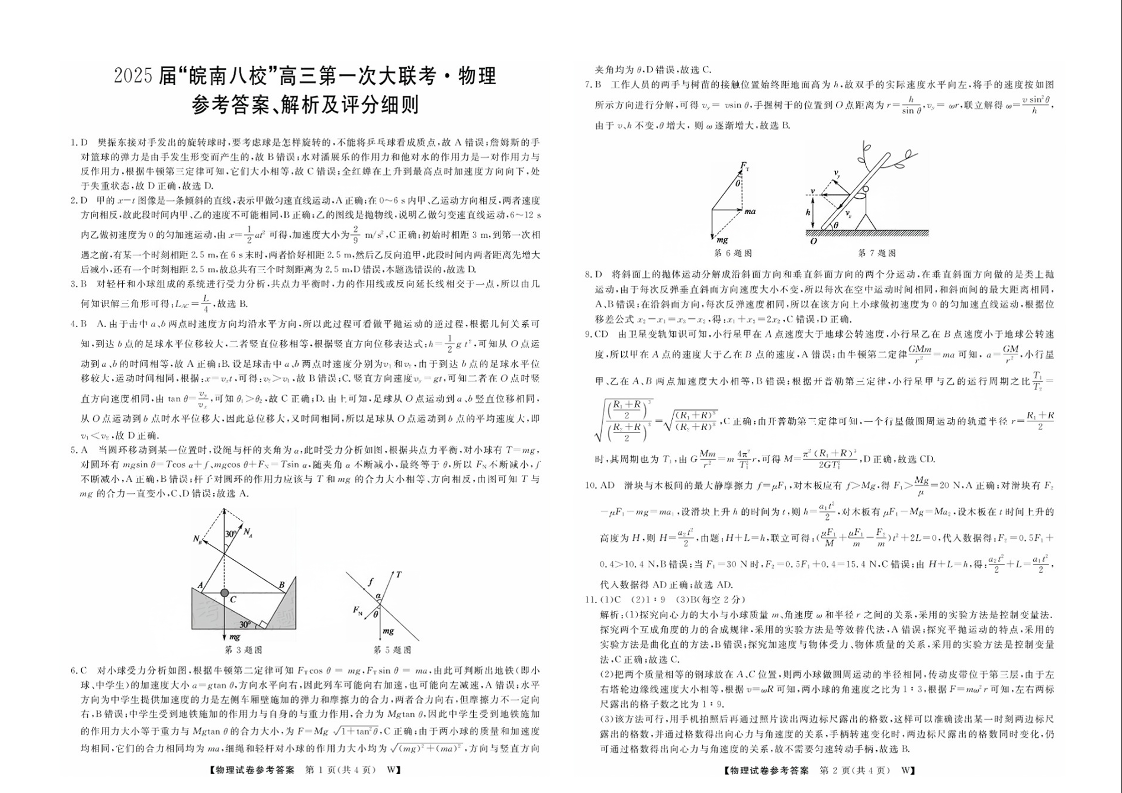 2025届“皖南八校”高三第一次大联考 物理答案