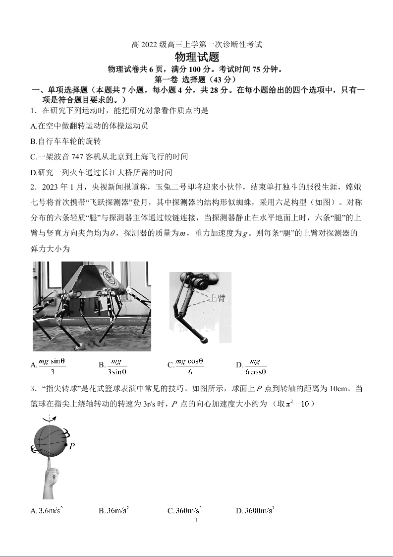 四川省宜宾市叙州区高2022级高三上期第一次诊断性考试 物理