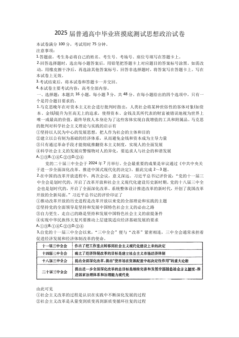 广西2025届高三10月七市联考 政治