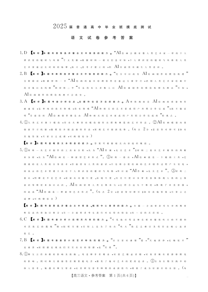 广西2025届高三10月七市联考 语文答案
