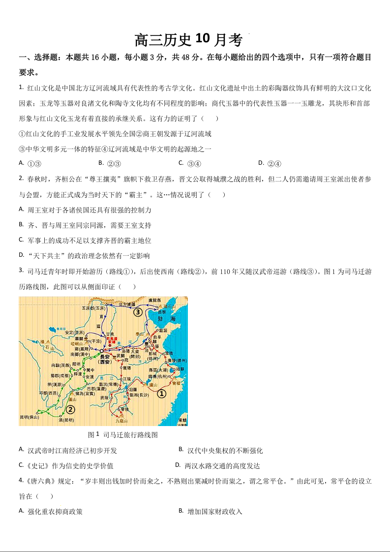 吉林省通化市梅河口市第五中学2025届高三上学期10月月考 历史