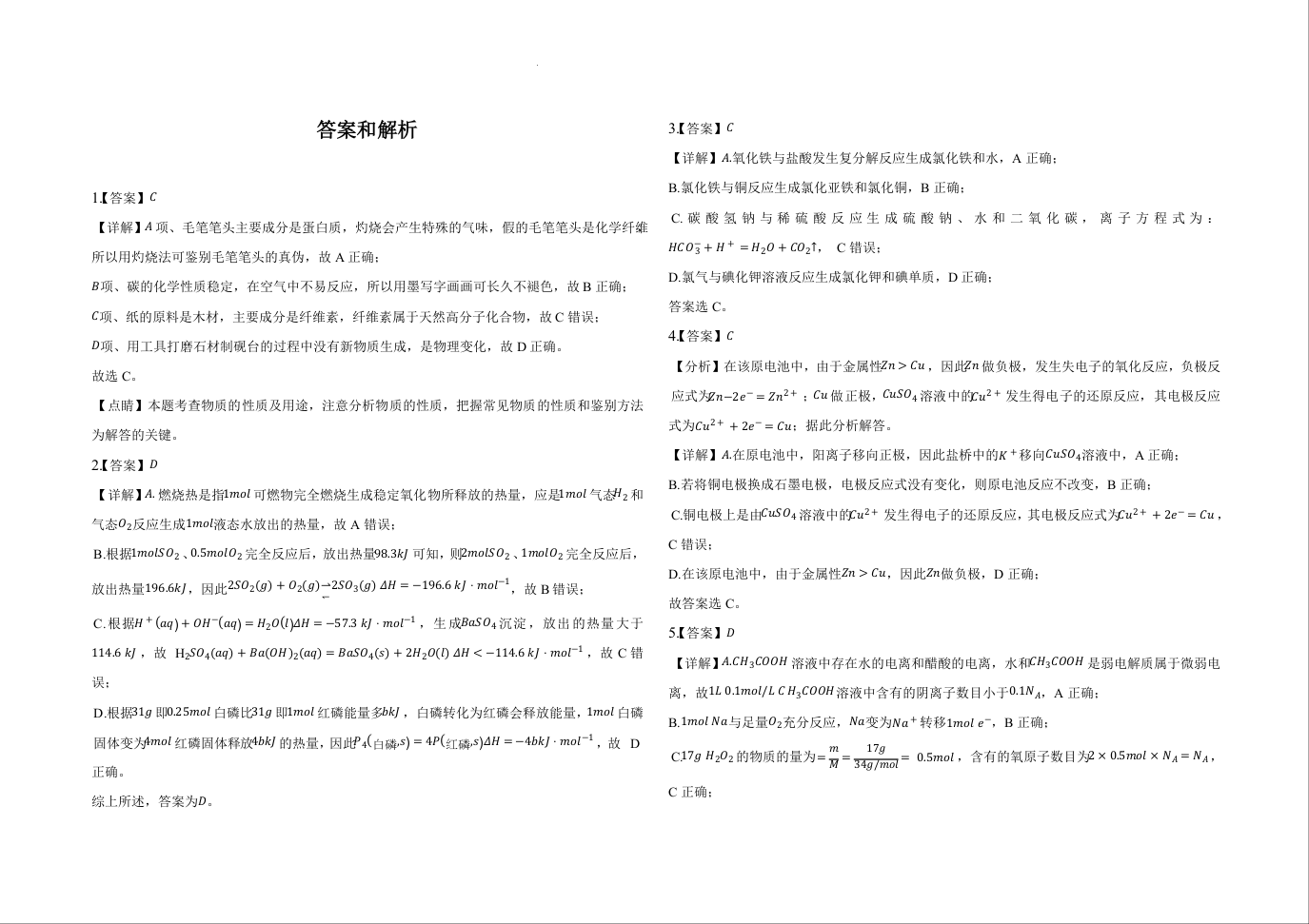 2025届广东省联考高三上学期10月第一次模拟(一模)化学答案
