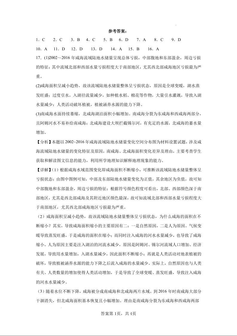 福州三中2024-2025学年第一学期高三第二次质量检测 地理答案