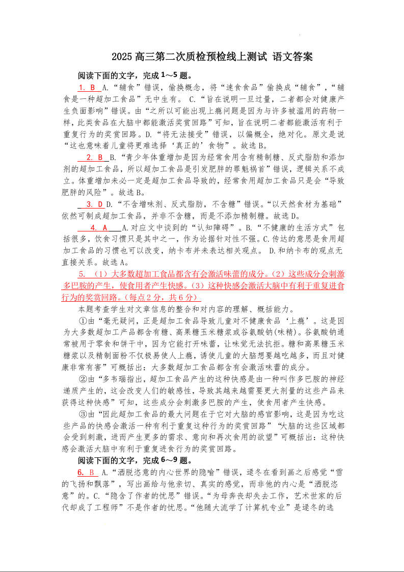 福州三中2024-2025学年第一学期高三第二次质量检测 语文答案