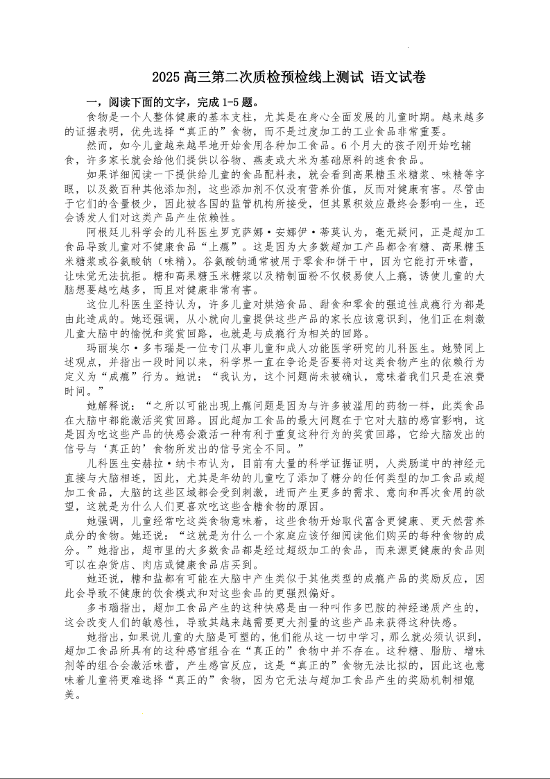 福州三中2024-2025学年第一学期高三第二次质量检测 语文